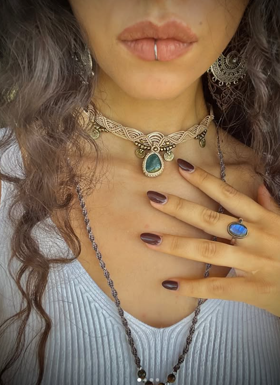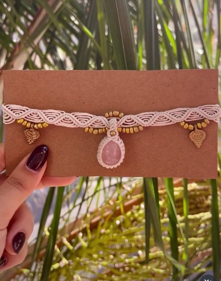 Handmade macrame jewellery with crystals.
